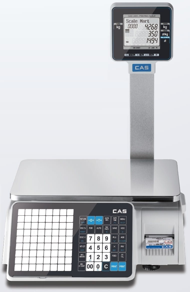 CAS CL3000 15P to profesjonalna waga etykietująca z funkcją drukowania etykiet, zaprojektowana z myślą o sklepach, targowiskach oraz zakładach produkcyjnych. Urządzenie oferuje ogromne możliwości konfiguracyjne – zarówno w zakresie opisów towarów, jak i formatów etykiet. Dzięki łączności przez LAN i WiFi, waga sprawdzi się w nawet najbardziej wymagających punktach handlowych.